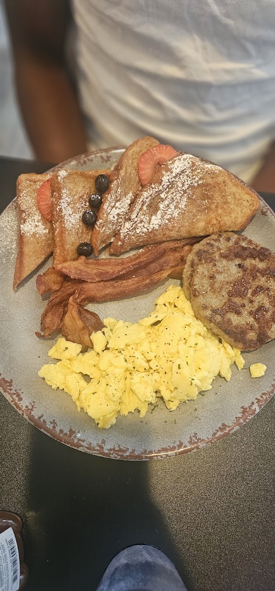 - Happy Breakfast Meals: Start your day right with the pancake meal or indulge in the fluffy French toast, both garnished with fresh berries and served with your choice of protein.